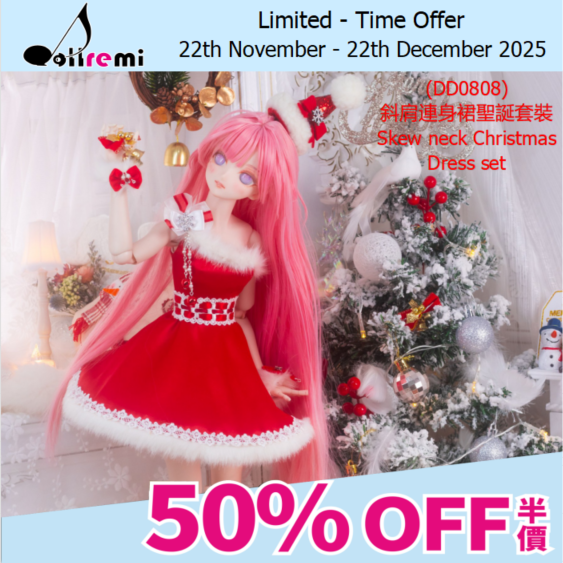 [Christmas OFFER!]【dollremi】(DD0808) 斜肩連身裙聖誕套裝 Skew neck Christmas Dress set